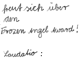 Ich freue mich, Deiner Homepage meinen Frozen Angel Award mit der ID-Nr. 025/05 zu verleihen und hoffe, Du hast Freude daran.